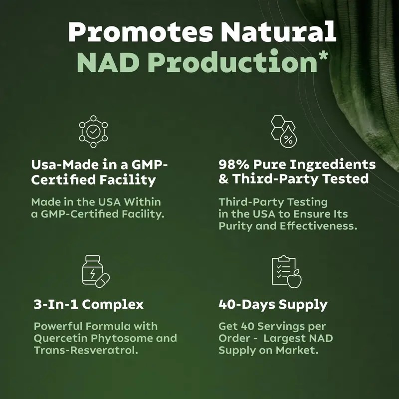 NAD+ Support: Specifically formulated to support NAD+ (Nicotinamide Adenine Dinucleotide) levels, which are crucial for maintaining brain health and cognitive function.